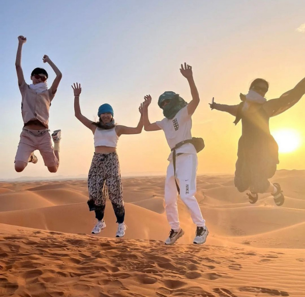 Experience a magical evening with our sunset picnic in Timlalin. Watch the sun set behind golden dunes while enjoying a traditional Moroccan tajine and refreshing mint tea. This activity combines breathtaking views, authentic cuisine, and unforgettable memories.